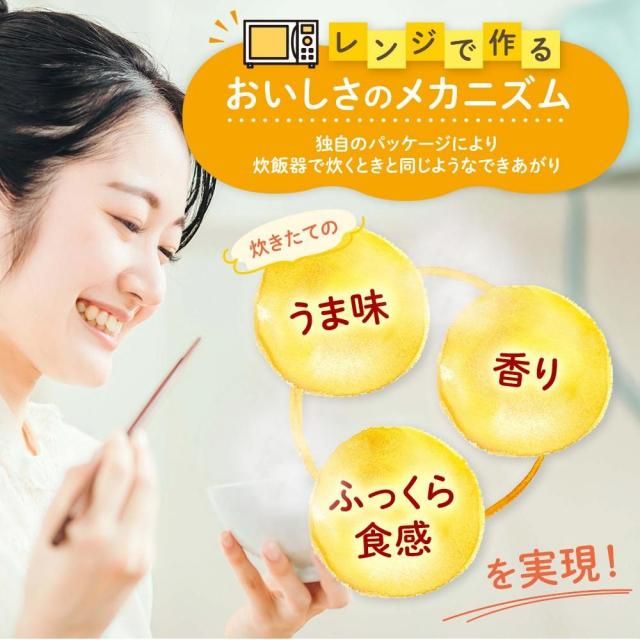 アルファ米という、お米をおいしく炊き上げた後に急速乾燥させてパック詰めした商品です。 水を入れて電子レンジで約3分でできあがり! またはお湯か水を注ぐだけでおいしいごはんができあがります。